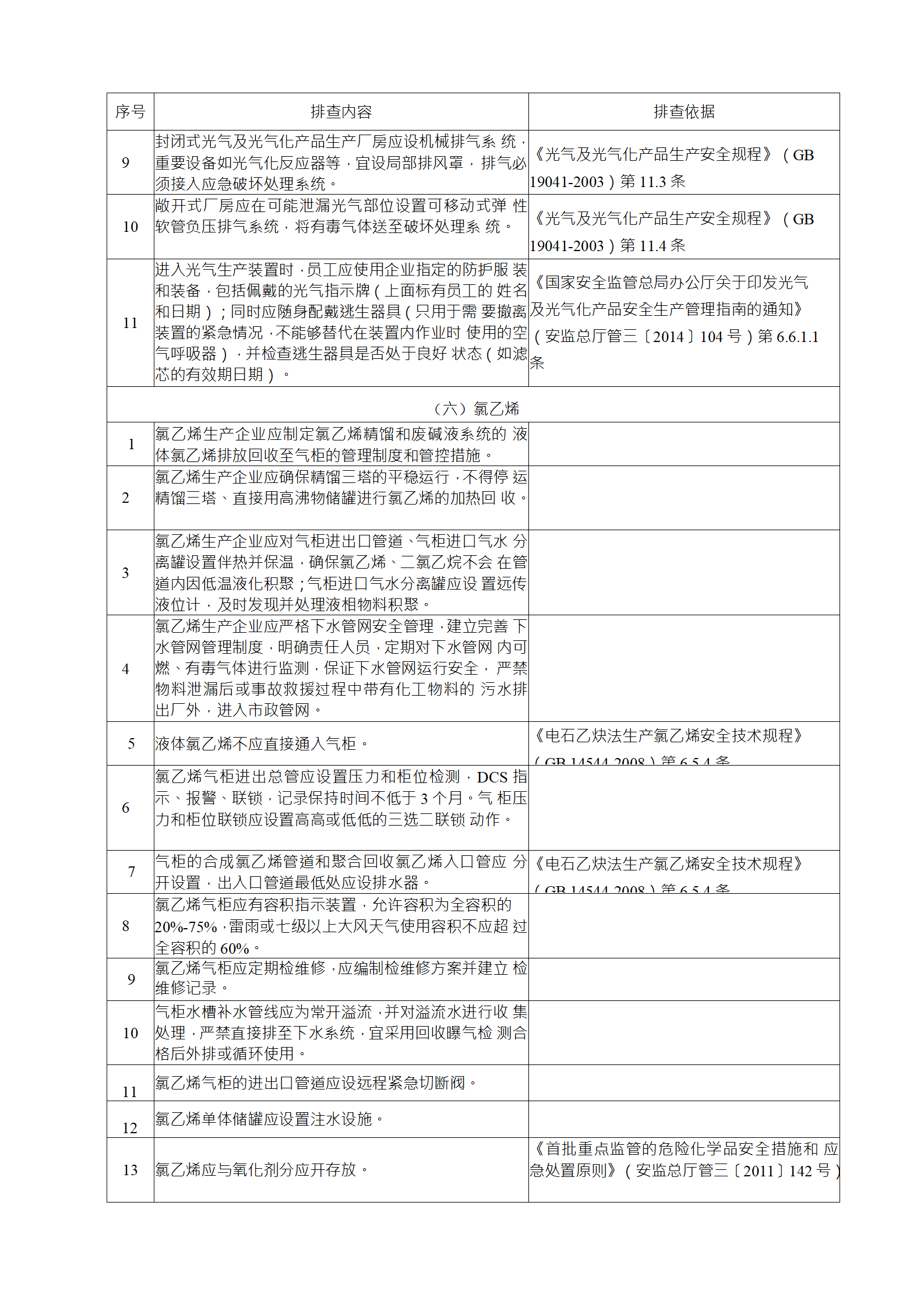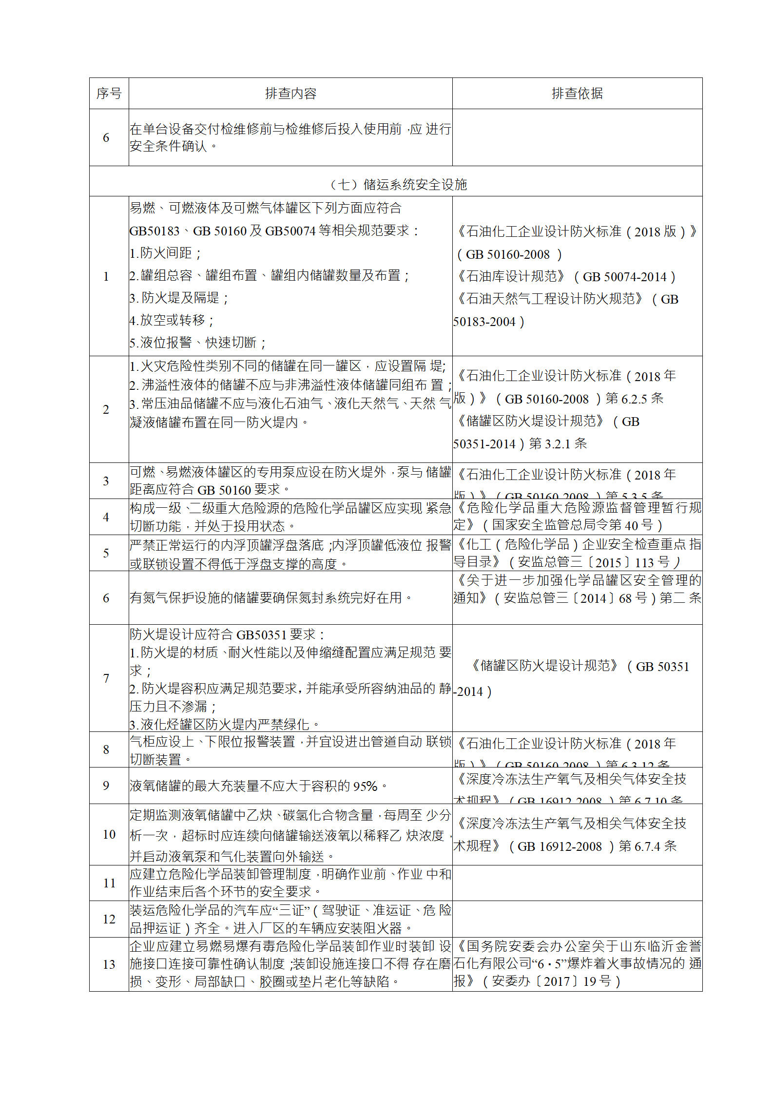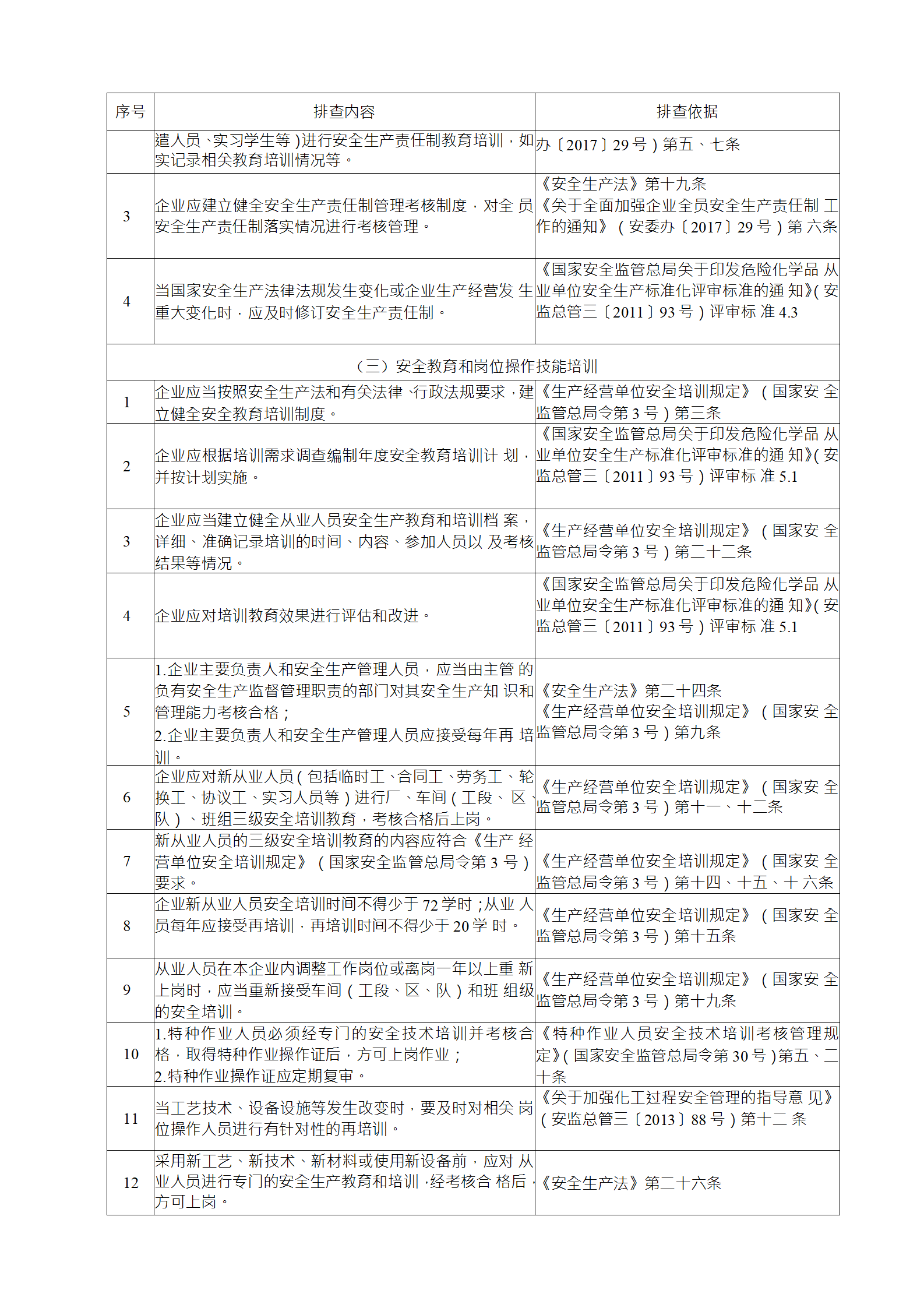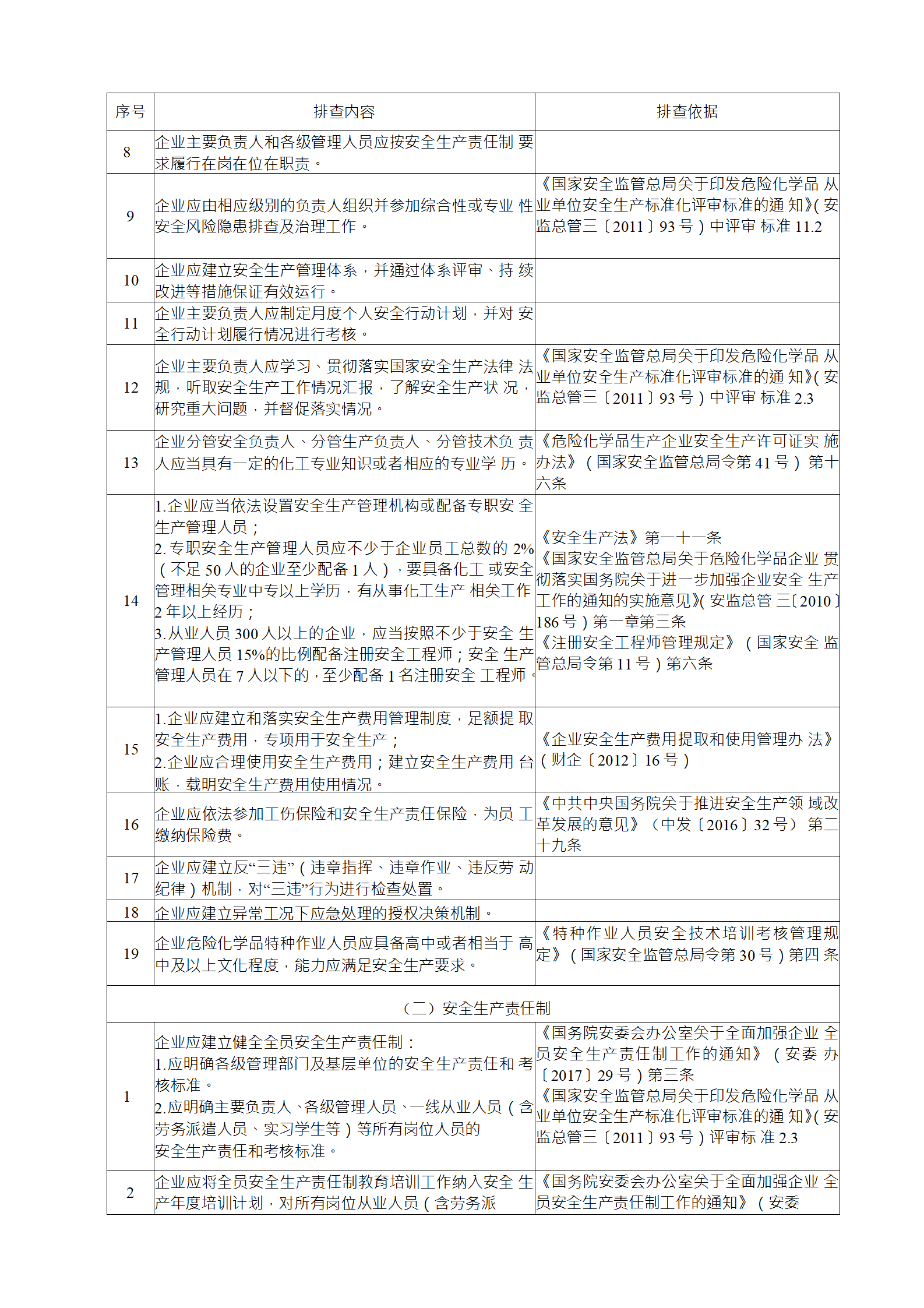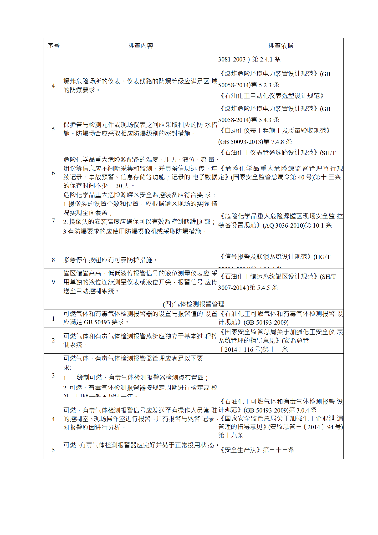 企業(yè)應(yīng)結(jié)合自身安全風(fēng)險及管控水平,按照化工過程安全 管理的要求,參照各專業(yè)安全風(fēng)險隱患排查表(見附件),編制 符合自身實(shí)際的安全風(fēng)險隱患排查表,開展安全風(fēng)險隱患排查 工作。