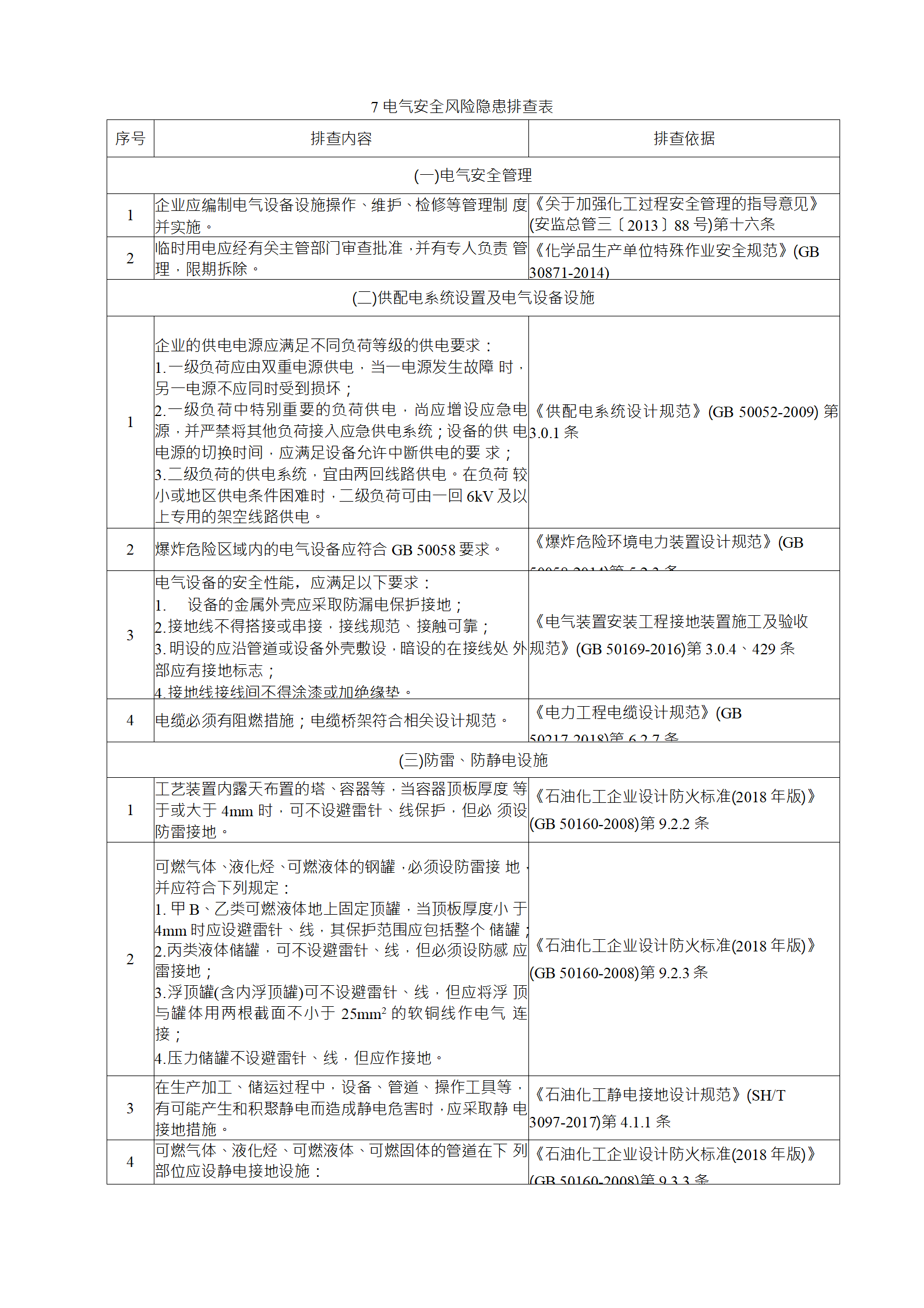 (4)季節(jié)性排查是指根據(jù)各季節(jié)特點(diǎn)開展的專項檢查,主要包括:春季以防雷、防靜電、防解凍泄漏、防解凍坍塌為重 點(diǎn);夏季以防雷暴、防設(shè)備容器超溫超壓、防臺風(fēng)、防洪、防 暑降溫為重點(diǎn);秋季以防雷暴、防火、防靜電、防凝保溫為重 點(diǎn);冬季以防火、防爆、防雪、防凍防凝、防滑、防靜電為重 點(diǎn);