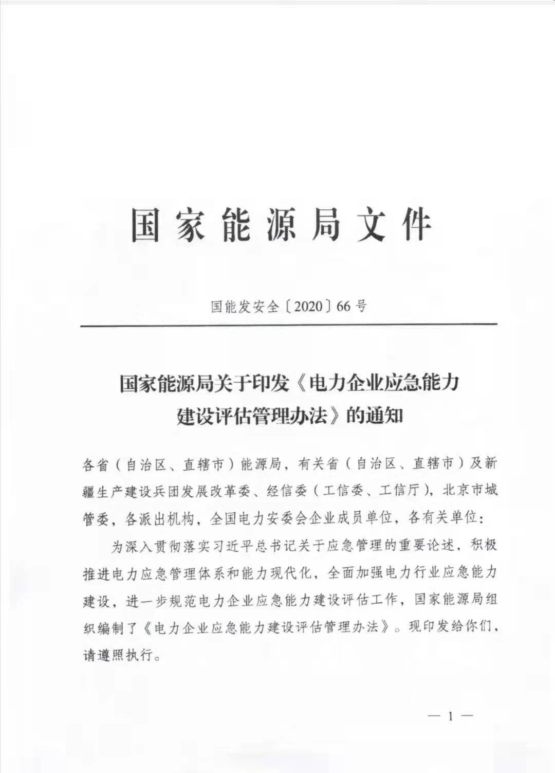 國(guó)家能源局印發(fā)《電力企業(yè)應(yīng)急能力建設(shè)評(píng)估管理辦法》