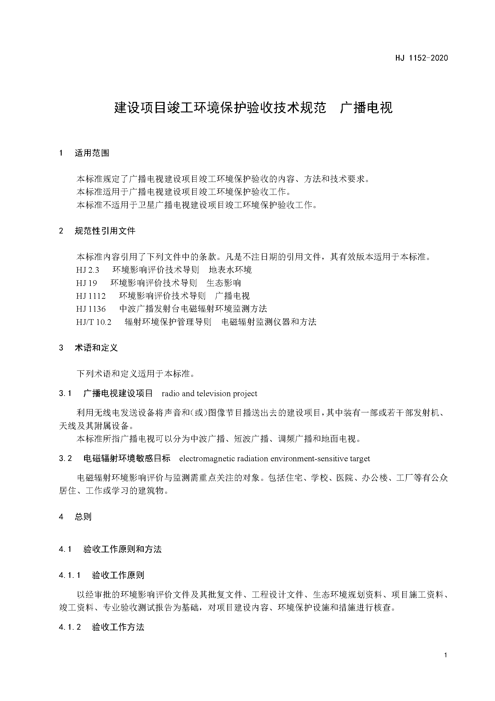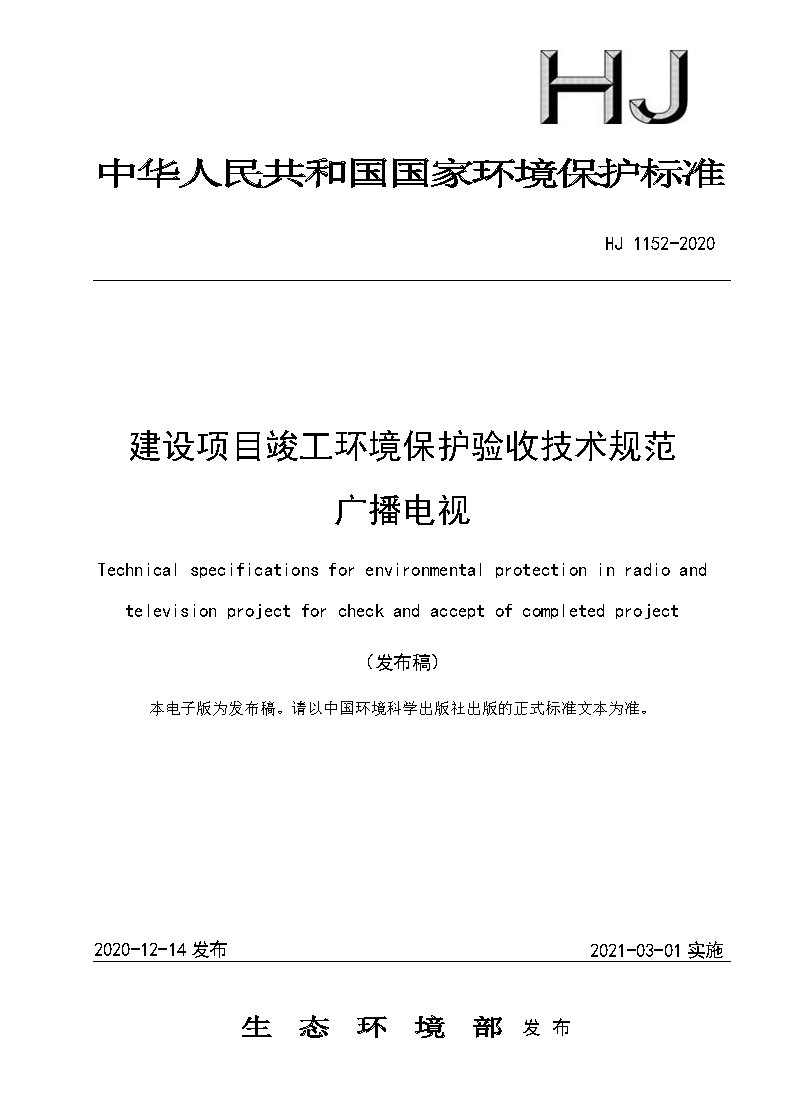 四、《建設項目竣工環(huán)境保護驗收技術規(guī)范 廣播電視》(HJ 1152-2020)