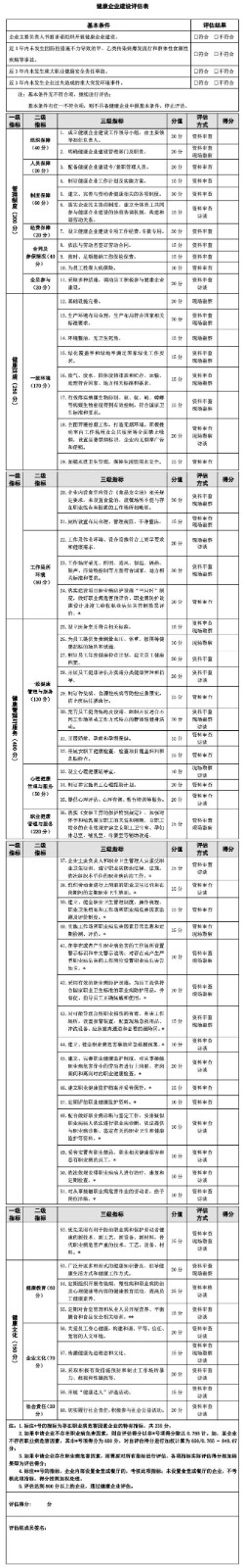 《健康企業(yè)建設(shè)評估技術(shù)指南》評估細(xì)則