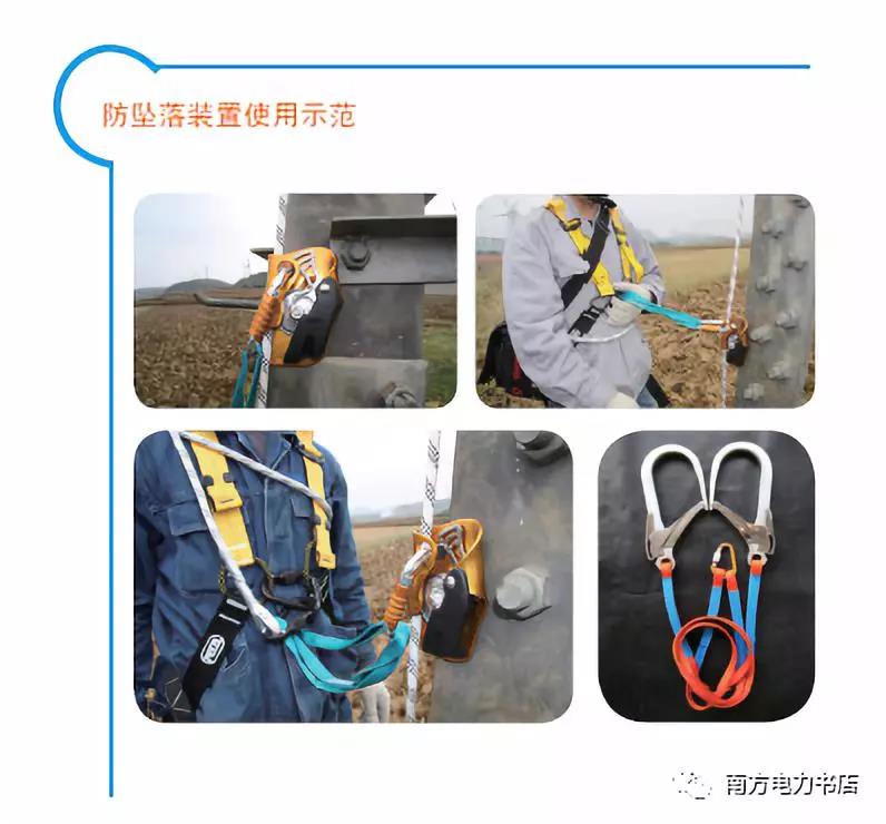 (2)首先登塔的人員在主繩的轉(zhuǎn)折點(diǎn)處,用一只安全扣和扁帶拴在桿塔的轉(zhuǎn)折位置,防護(hù)主繩從安全扣內(nèi)穿過(guò)。