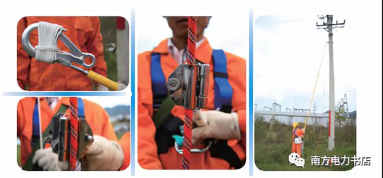 (1)上桿前,先利用絕緣伸縮桿將連接有安全繩的專用掛鉤可靠掛到桿上的特制掛環(huán)內(nèi),并將自鎖器安裝在安全繩上。