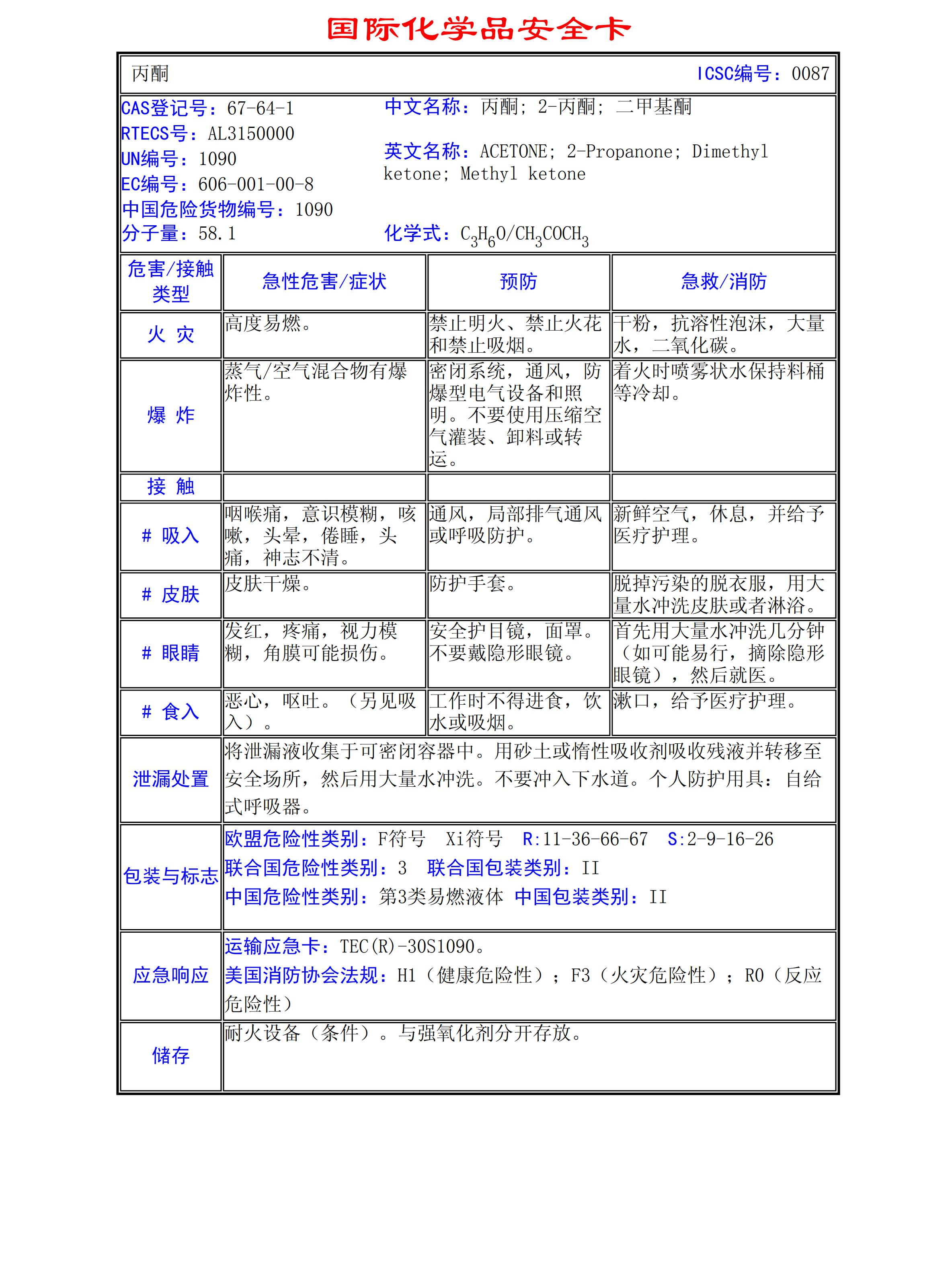 丙酮MSDS