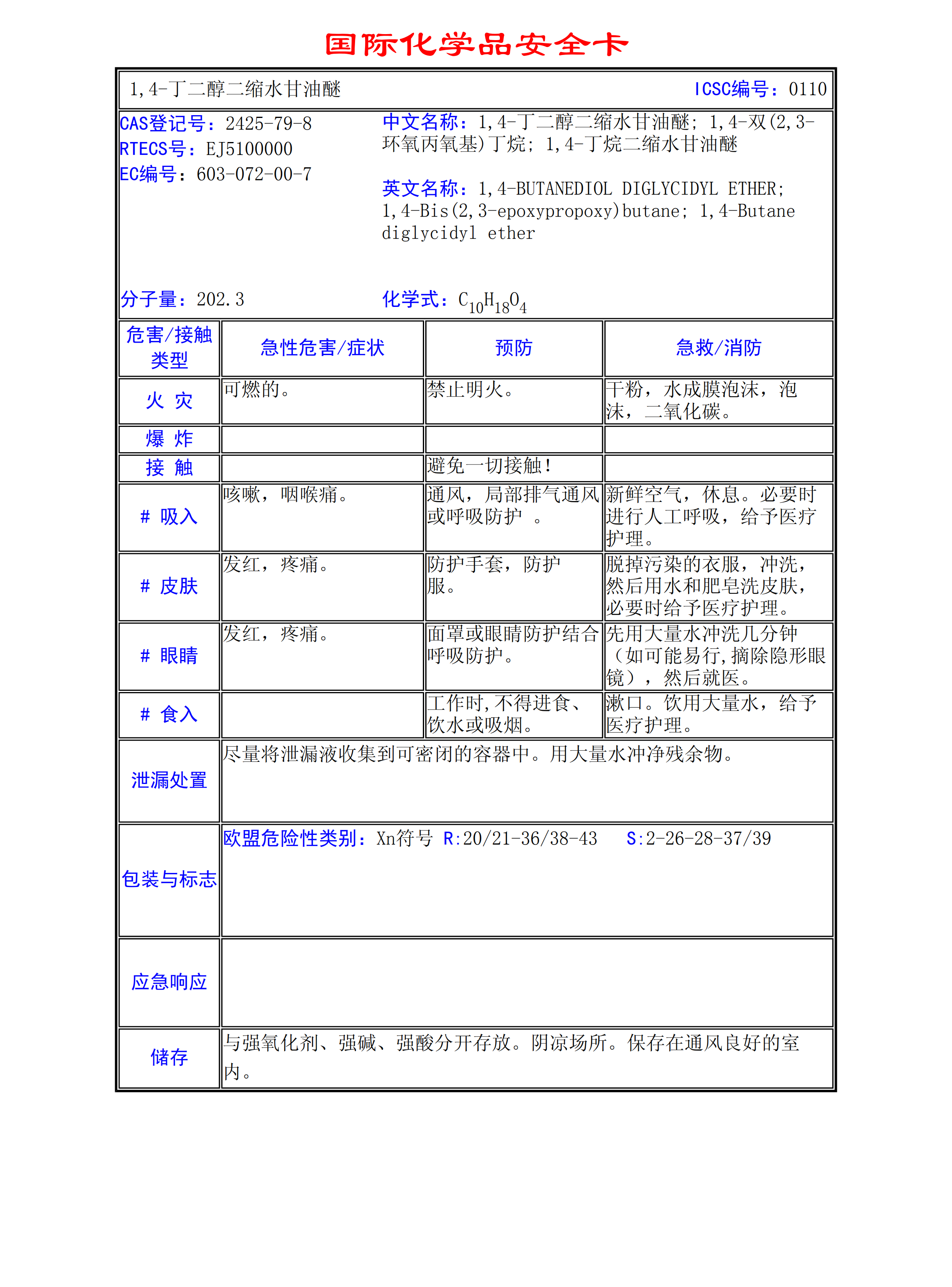 1,4-丁二醇二縮水甘油醚MSDS