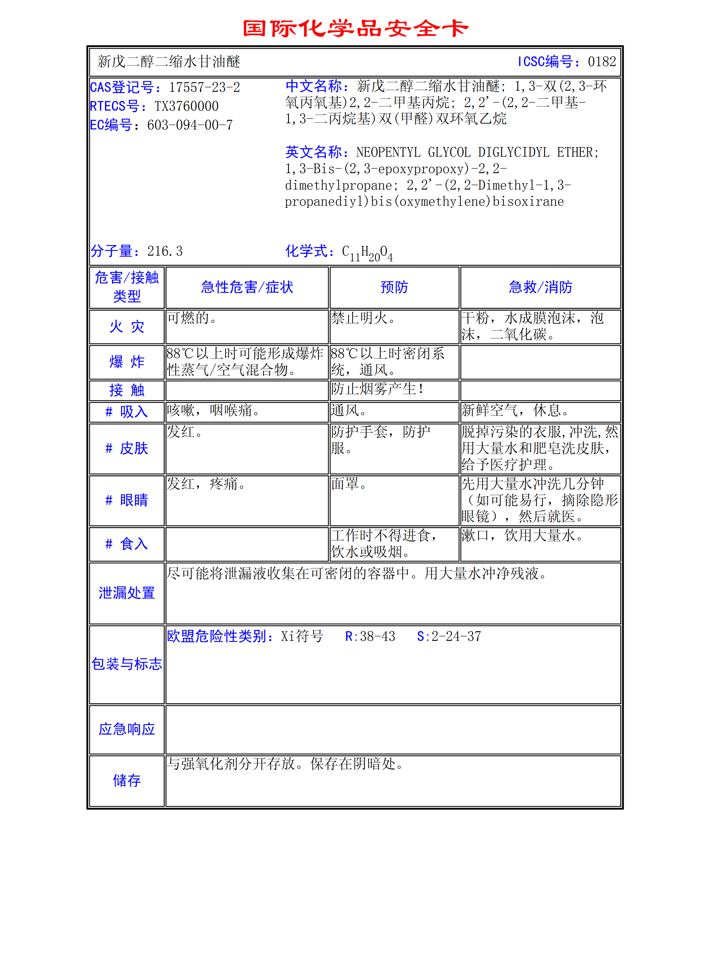 新戊二醇二縮水甘油醚MSDS