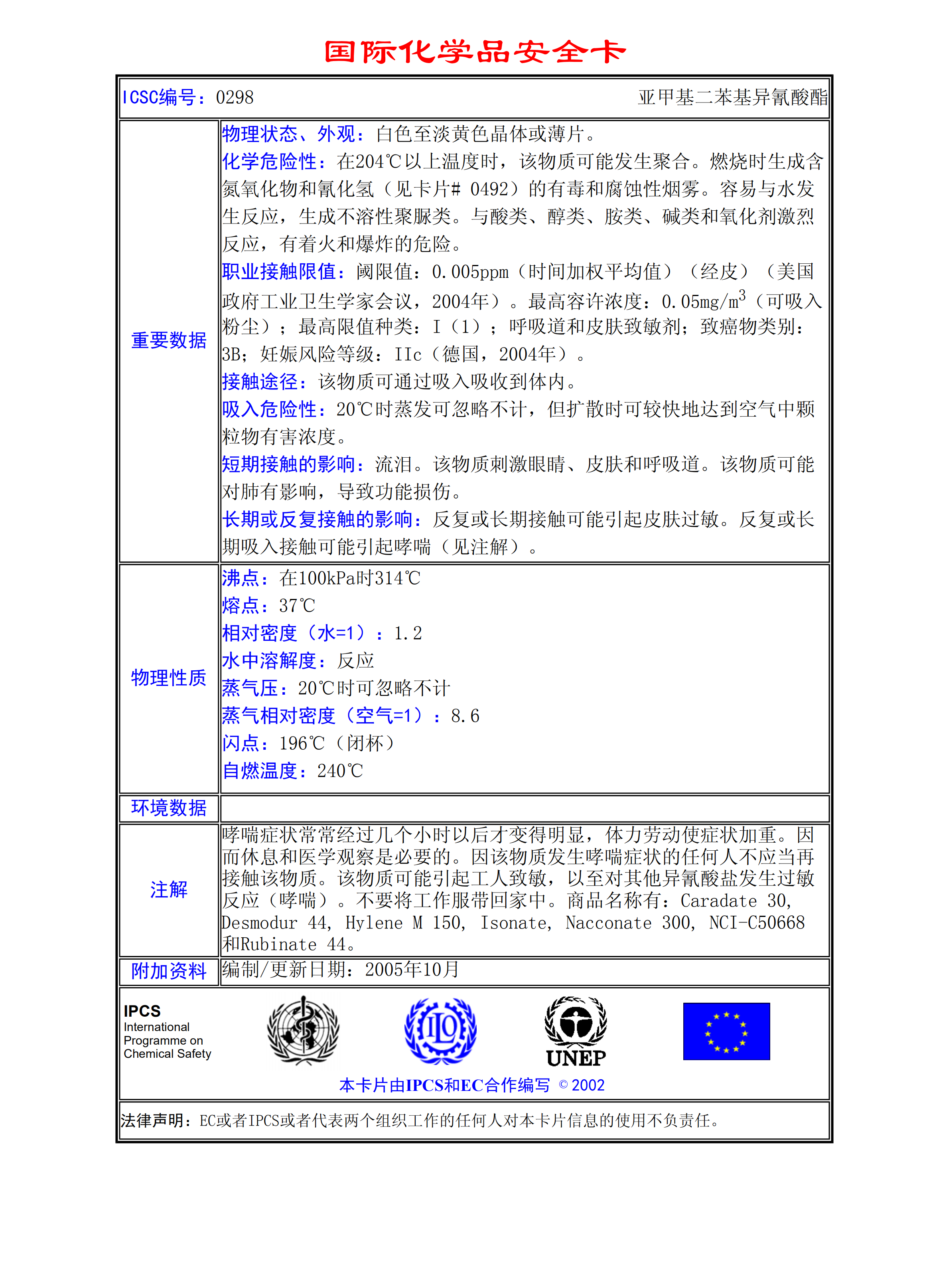 亞甲基二苯基異氰酸酯MSDS