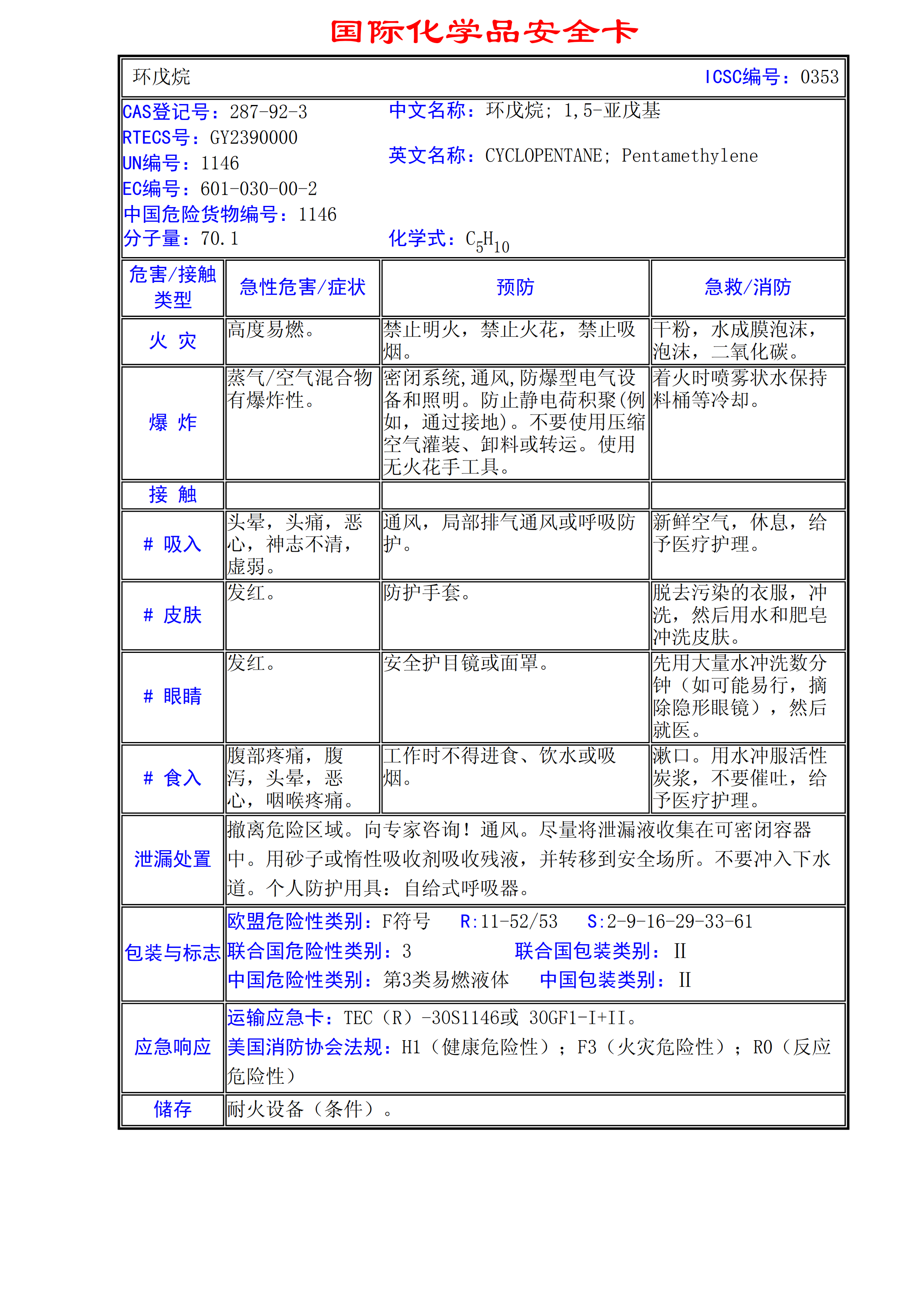 環(huán)戊烷MSDS