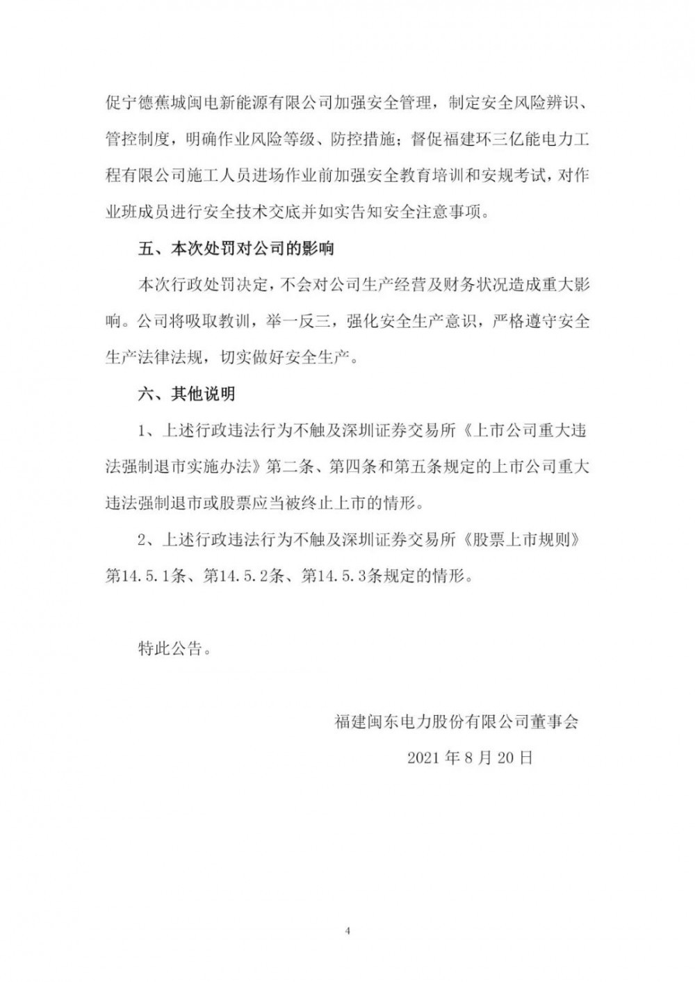 近日,福建閩東電力股份有限公司(以下簡(jiǎn)稱“閩東電力”)向社會(huì)公眾披露了《關(guān)于公司及全資子公司收到行政處罰決定書(shū)的公告》,閩東電力及旗下全資子公司寧德蕉城閩電新能源有限責(zé)任公司(以下簡(jiǎn)稱“蕉城閩電”)、福建環(huán)三億能電力工程有限公司(以下簡(jiǎn)稱“環(huán)三億能”)分別收到國(guó)家能源局福建監(jiān)管辦公室簽發(fā)的《行政處罰決定書(shū)》。