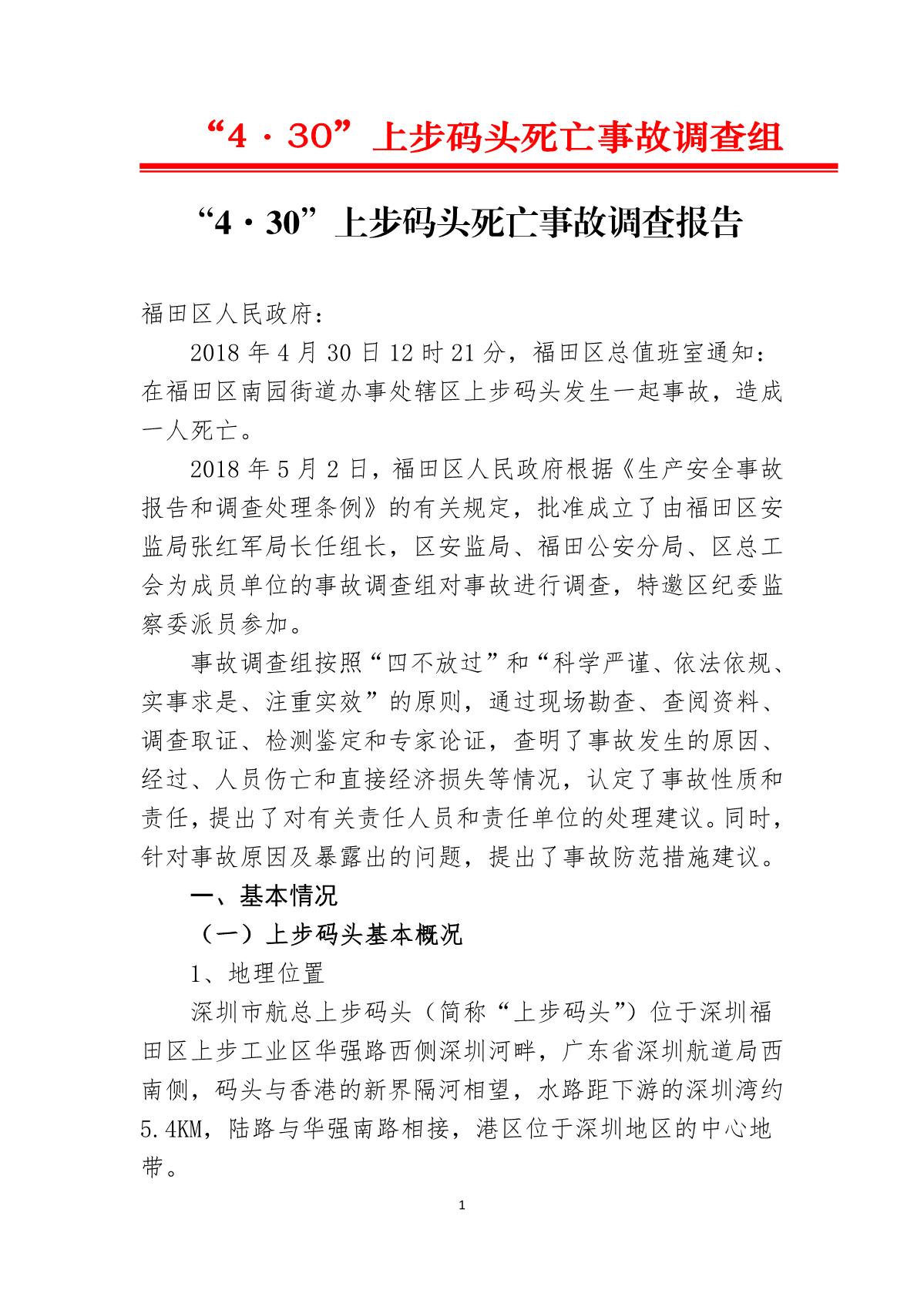 “4.30”上步碼頭死亡事故調(diào)查報(bào)告