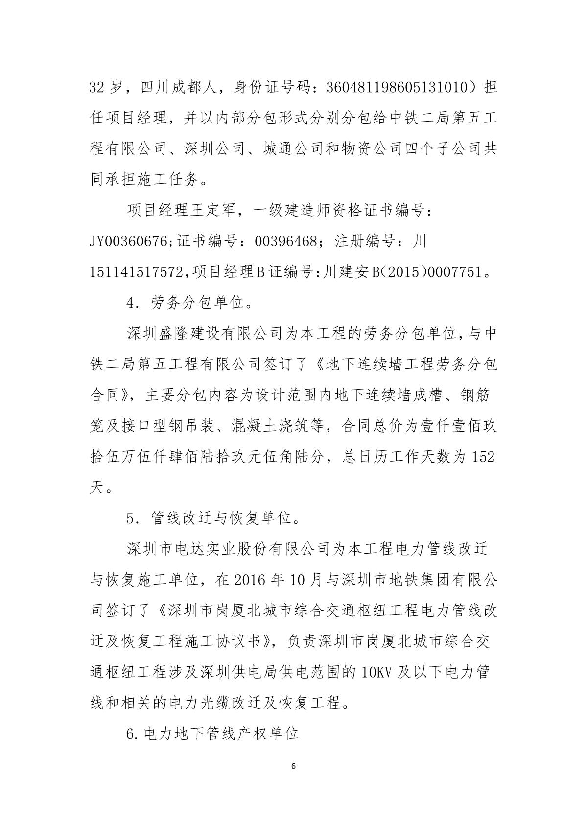 福田區(qū)人民政府關(guān)于深圳市城市軌道交通6號(hào)線二期主體工程6111標(biāo)“7.05”10kv電力電纜受損事故調(diào)查報(bào)告