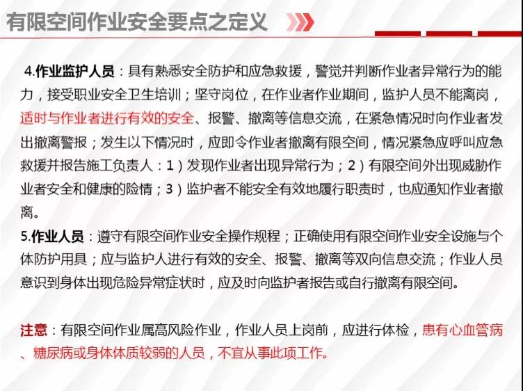 二要嚴(yán)格落實(shí)有限空間作業(yè)安全管理規(guī)定。各地各有關(guān)部門要督促企業(yè)嚴(yán)格執(zhí)行《安徽省有限空間作業(yè)安全管理與監(jiān)督暫行規(guī)定》,凡涉及到有限空間作業(yè),做到“五個(gè)必須”,即必須嚴(yán)格實(shí)行作業(yè)審批制度;必須做到“先通風(fēng)、再檢測(cè)、后作業(yè)”;必須配備個(gè)人防中毒窒息等防護(hù)裝備,設(shè)置安全警示標(biāo)識(shí);必須對(duì)作業(yè)人員進(jìn)行安全培訓(xùn);必須制定應(yīng)急措施,現(xiàn)場(chǎng)配備應(yīng)急裝備,嚴(yán)禁盲目施救。