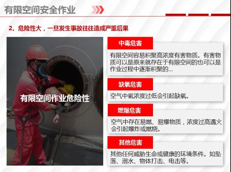 一要立即開展有限空間安全風(fēng)險(xiǎn)排查。春節(jié)假期剛過,各類企業(yè)集中復(fù)工復(fù)產(chǎn),涉及有限空間作業(yè)安全的檢維修、調(diào)試行為增多,加之氣溫逐漸升高,造成有限空間中有毒有害氣體集聚,安全風(fēng)險(xiǎn)加劇。各地各有關(guān)部門要督促涉及有限空間作業(yè)的工礦商貿(mào)企業(yè)以及市政工程、垃圾發(fā)電、燃?xì)?、熱力、排水、衛(wèi)生、環(huán)保等重點(diǎn)單位、重點(diǎn)區(qū)域、重點(diǎn)場(chǎng)所開展全方位的風(fēng)險(xiǎn)隱患排查。對(duì)發(fā)現(xiàn)的風(fēng)險(xiǎn)隱患,企業(yè)要逐一登記造冊(cè),向負(fù)有安全監(jiān)管職責(zé)的部門報(bào)告,并按照《有限空間作業(yè)安全指導(dǎo)手冊(cè)》(應(yīng)急廳函〔2020〕299號(hào))要求落實(shí)各項(xiàng)防范措施。