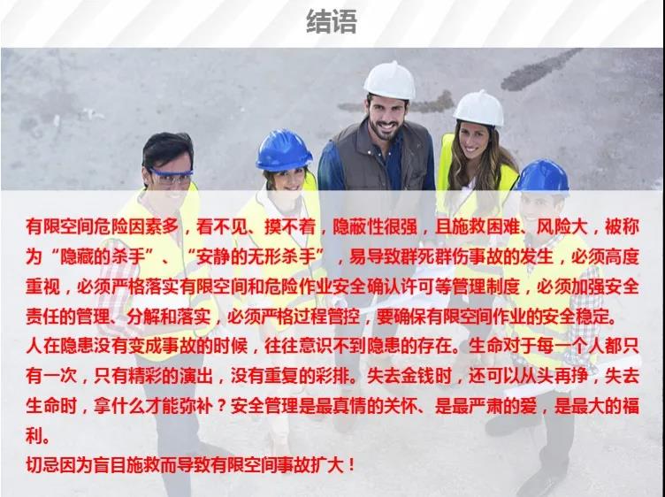 事故暴露出企業(yè)和從業(yè)人員對(duì)有限空間風(fēng)險(xiǎn)辨識(shí)不清、試生產(chǎn)過程中安全防范措施不到位、盲目施救導(dǎo)致傷亡擴(kuò)大等問題,也暴露出監(jiān)督管理存在薄弱環(huán)節(jié)等問題。省政府領(lǐng)導(dǎo)高度重視,王清憲省長、鄧向陽常務(wù)副省長、張紅文副省長先后作出批示,要求妥處善后,查清原因,嚴(yán)格追責(zé)。為深刻吸取事故教訓(xùn),堅(jiān)決遏制類似事故再次發(fā)生,現(xiàn)提出以下工作要求,請(qǐng)結(jié)合本地區(qū)本部門實(shí)際認(rèn)真貫徹執(zhí)行。