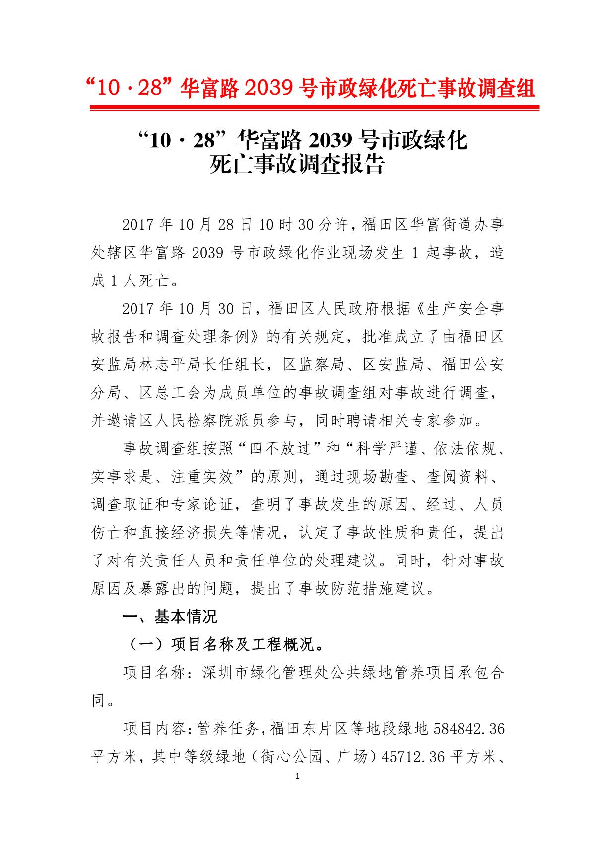 “10.28”華富路2039號市政綠化死亡事故調(diào)查報告