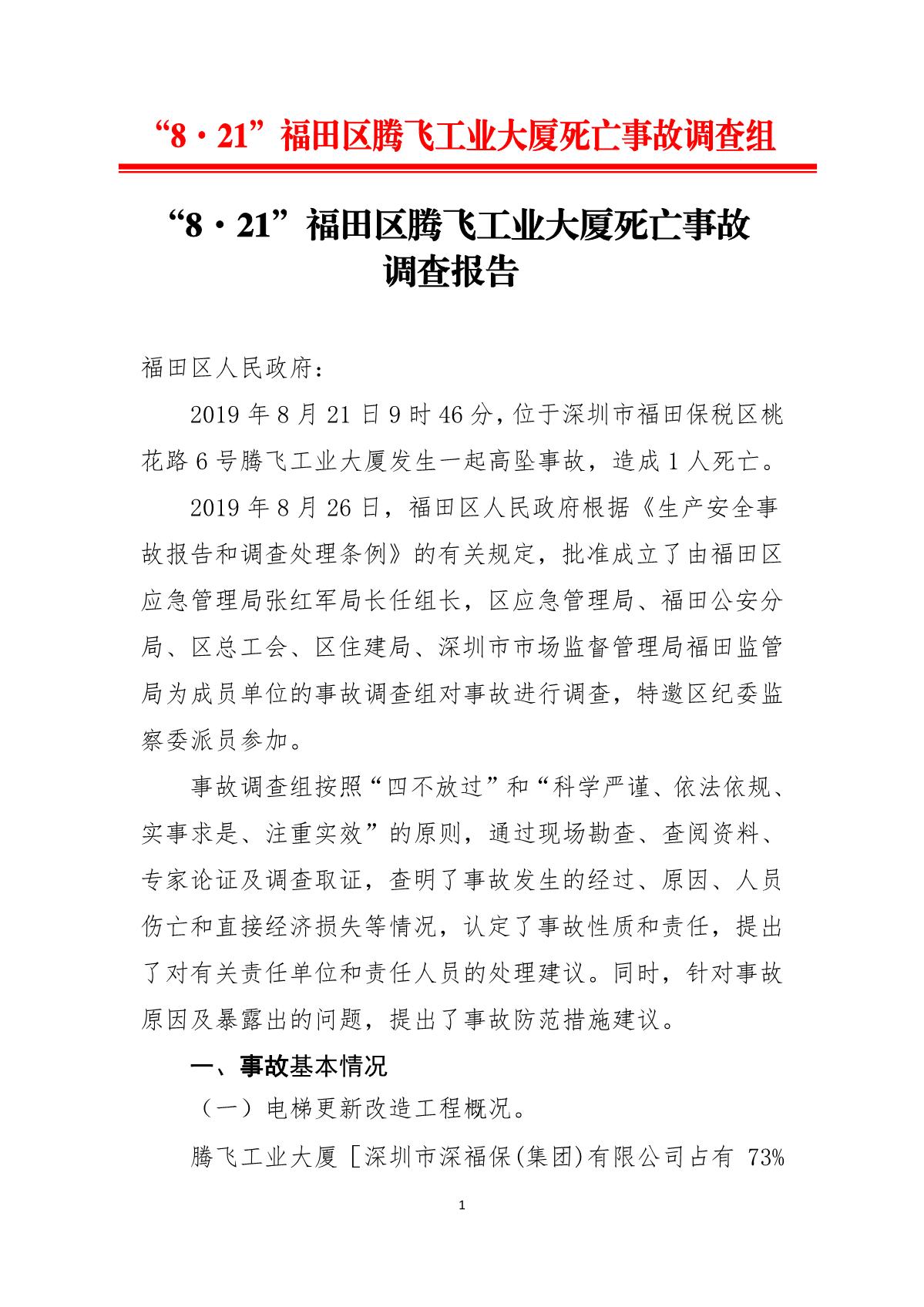 “8.21”福田區(qū)騰飛工業(yè)大廈死亡事故調查報告