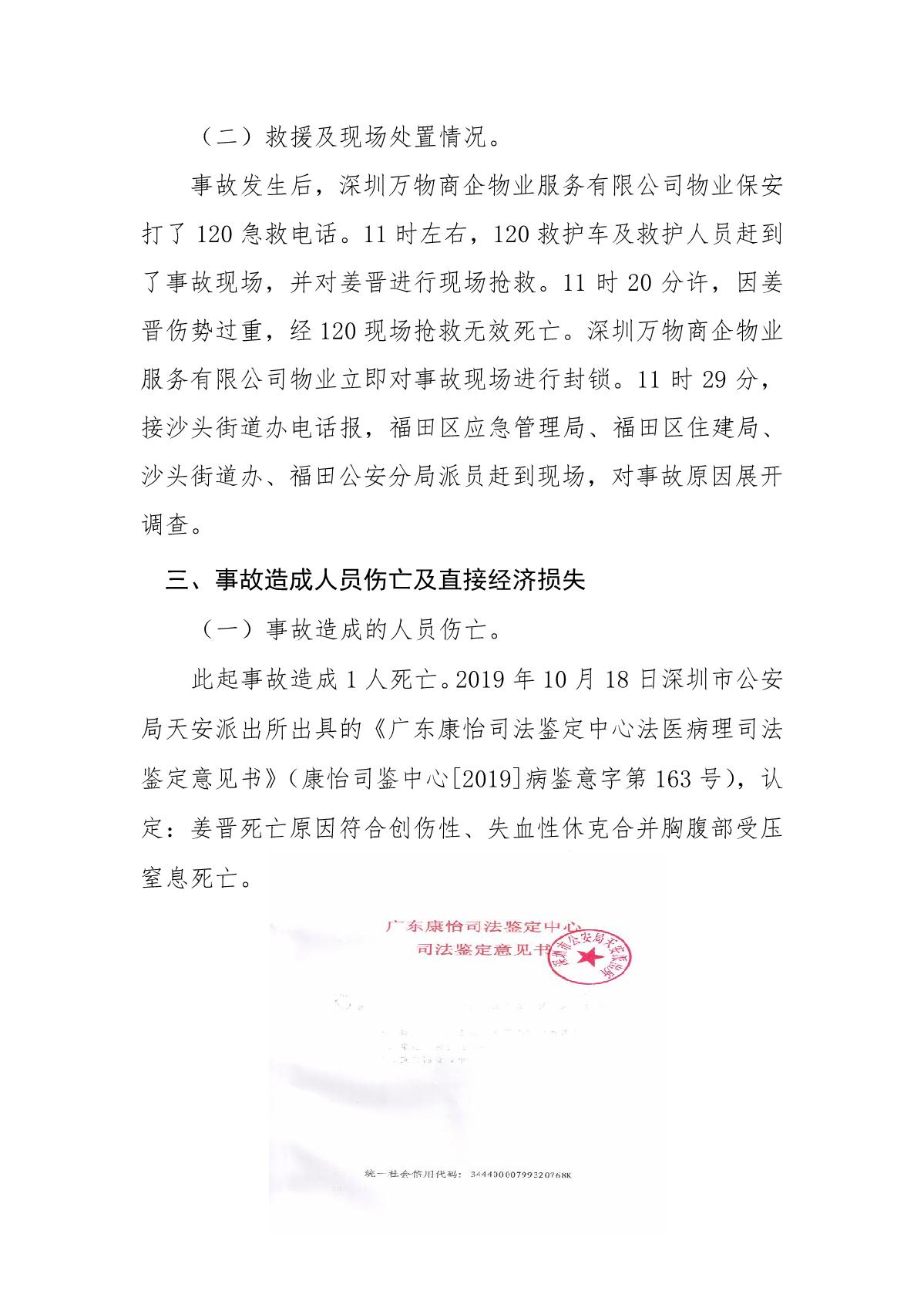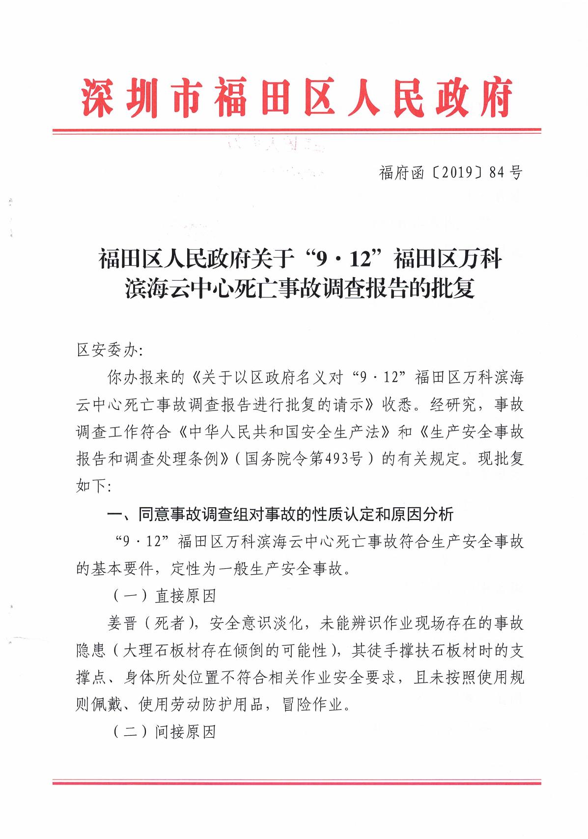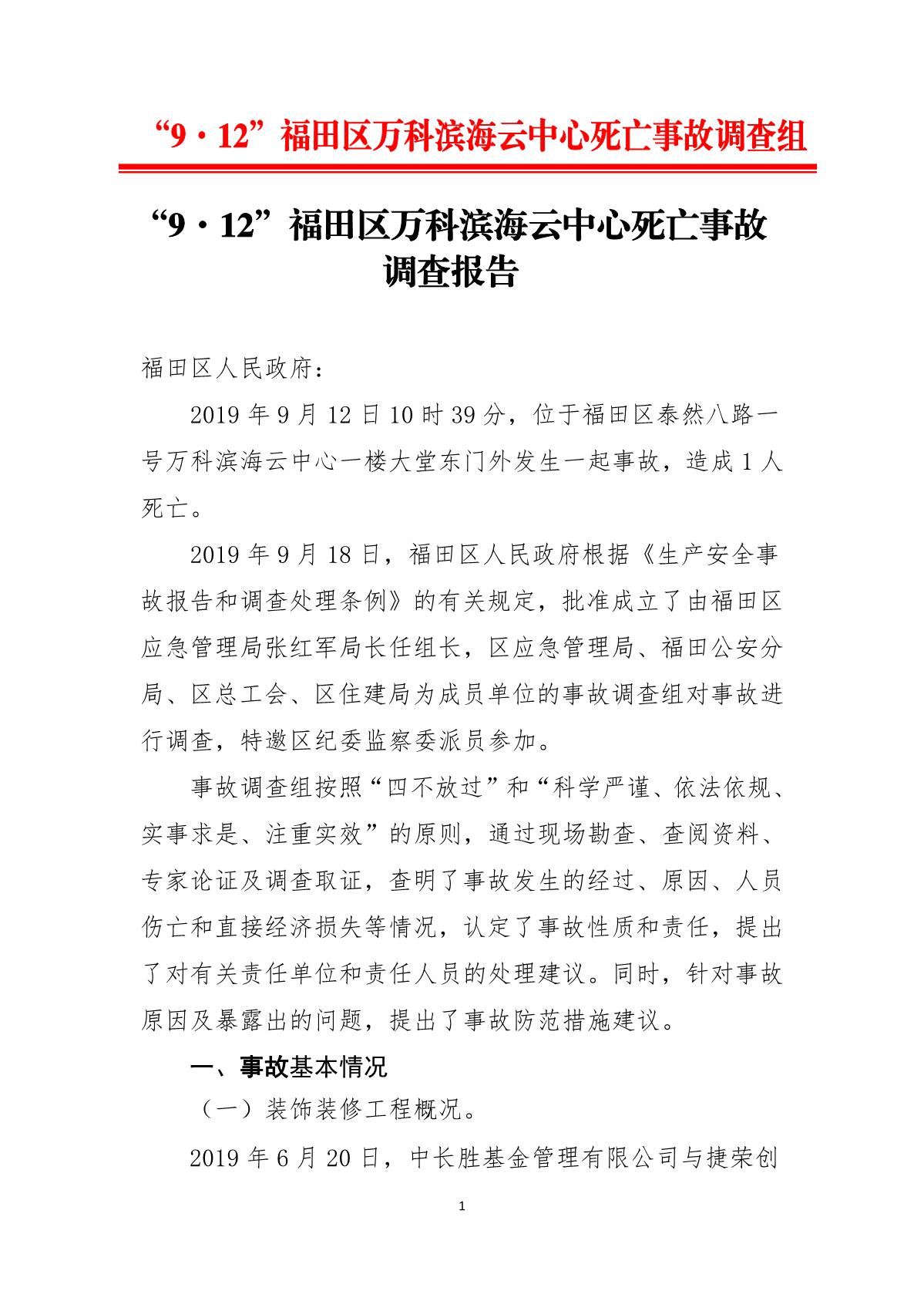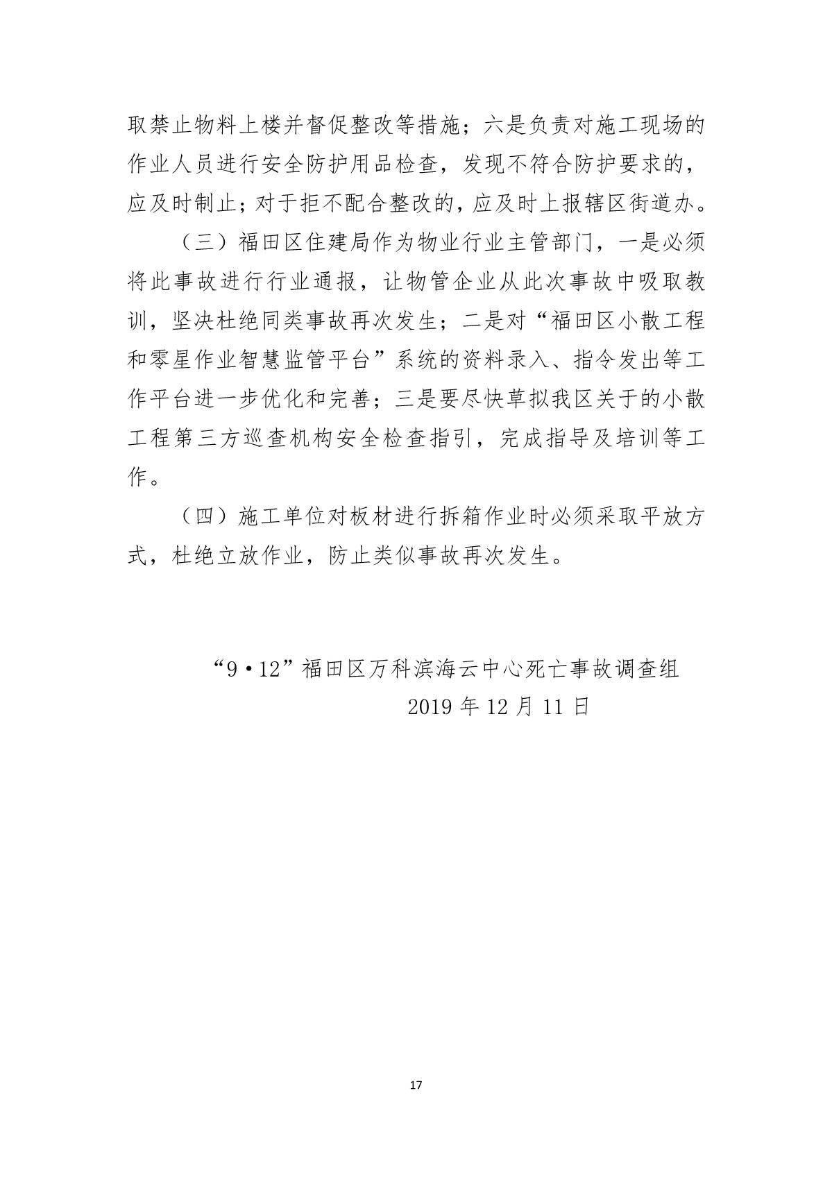 “9.12”福田區(qū)萬科濱海云中心死亡事故調查報告