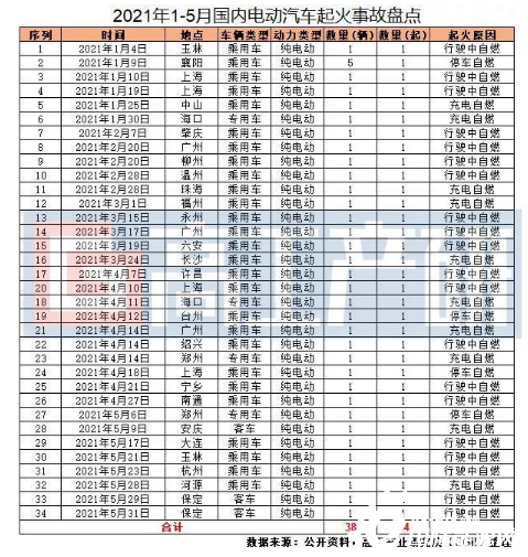 2021年1-5月國內(nèi)電動汽車起火事故盤點